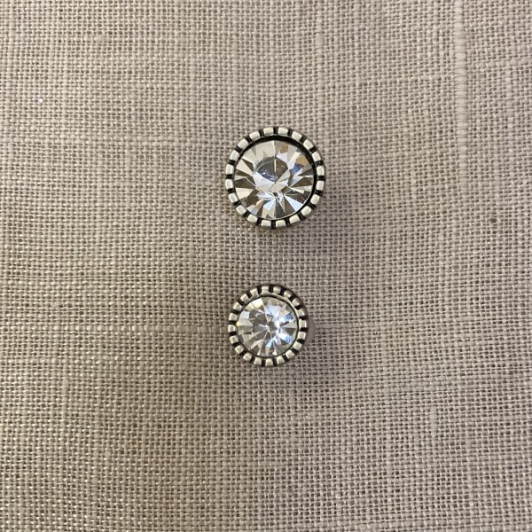 Mat silver metal cone button glass cristal strass inside, chiseled edge