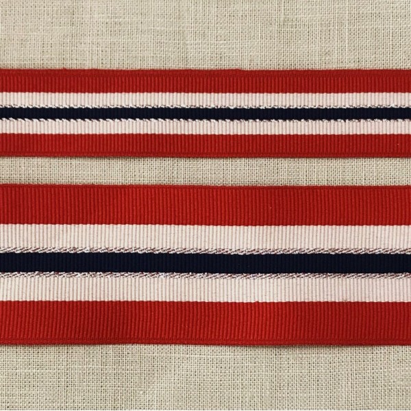 Poppy, ivory, navy and silver lurex grosgrain ribbon