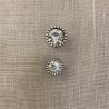 Bouton cône en métal argent avec strass en verre crystal, bord ciselé