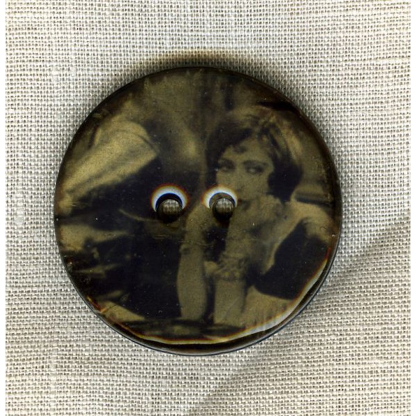 Bouton en noix de coco émaillée et sublimée par une impression photo ancienne monochrome