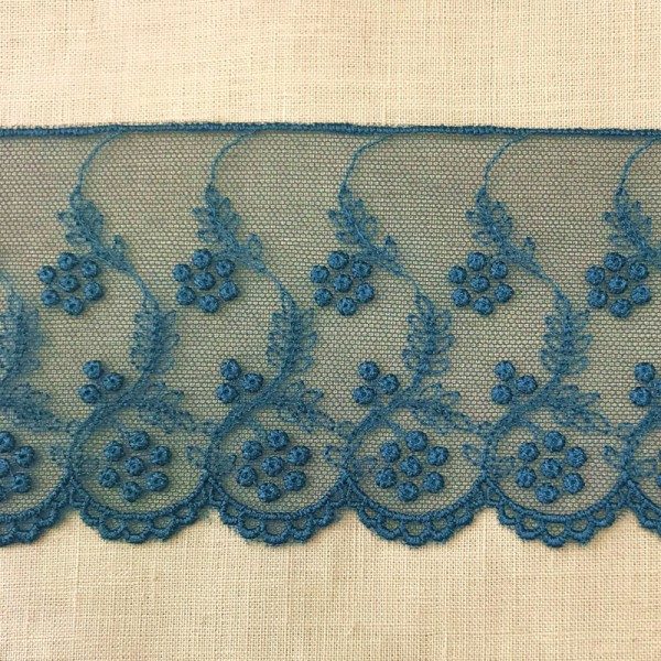 Dentelle de tulle brodé de fleurs, bord festonné