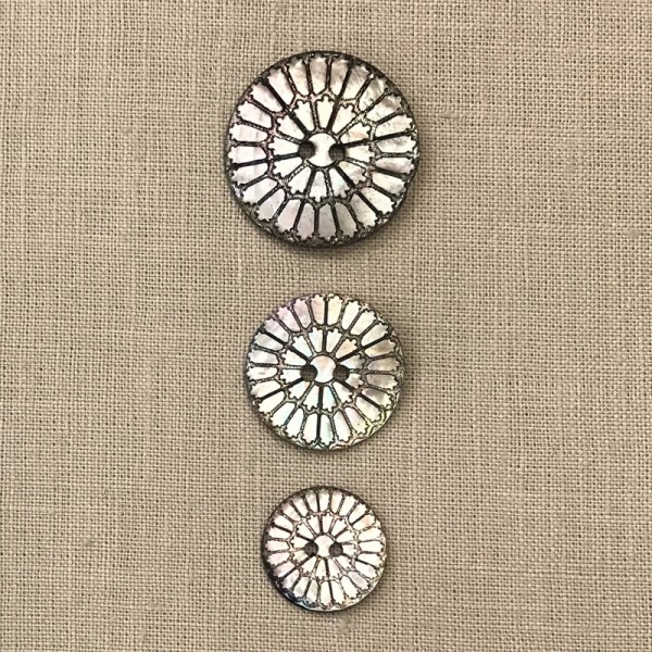 Bouton en nacre naturelle gravée noire