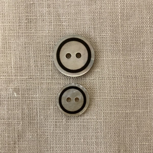 Bouton en nacre naturelle brillante gravée et émaillée, motif d'un cercle émaillé noir mat
