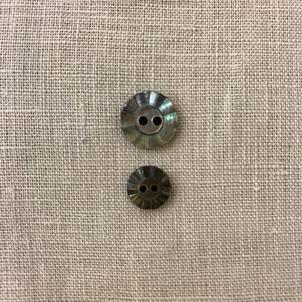 Bouton de chemise en nacre grise brillante, très épais, bord cannelé, centre surélevé
